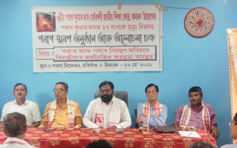 অসমত স্বতন্ত্ৰ অৰ্থনৈতিক বিকাশ কৰাটো সম্ভৱ নহয় বুলি শাসকীয় পক্ষ সমূহে যি ধ্যান -ধাৰণা অসমৰ খিলঞ্জীয়া লোকৰ মাজত সুমুৱাই দিলে তাৰ পৰা আজিও মুক্ত হব পৰা নাই অসমৰ খিলঞ্জীয়া লোক সকল। যাৰ বাবে অসমৰ খিলঞ্জীয়া লোক সকলৰ মাজত কৰ্ম স্পৃহা কমি গৈছে ৷এই মন্তব্য প্ৰবন্ধকাৰ,সমালোচক মিলেশ্বৰ পাতৰৰ।অসমৰ বিশিষ্ট মানৱাধিকাৰ কৰ্মী,সাংবাদিক পৰাগ কুমাৰ দাসৰ ২৭ তম মৃত্যু বাৰ্ষিকীত শ্বহীদ পৰাগ কুমাৰ দাস সোঁৱৰণী জাতীয় শিক্ষা কেন্দ্র অসমৰ উদ্যোগত মৰিগাঁৱৰ পৰাগ নিকেতনত অনুষ্ঠিত হোৱা পৰাগ স্মৰণ অনুষ্ঠান আৰু আলোচনা চক্ৰত মুখ্য বক্তা হিচাপে ভাষণ প্ৰদান কৰি পাতৰে কয় যে ,চৰকাৰৰ আঁচনি সমূহে সৰ্বসাধাৰণ লোক সকলক কৰ্মবিমুখিতা কৰি তুলিছে। চৰকাৰ তথা শাসক শ্ৰেণীৰ নীতি সমূহে বহিৰাগত পূ্ঁজিপতি সমূহক যি ৰঙাদলিচা পাৰি দিছে তাৰ বাবে খিলঞ্জীয়া লোক সকলক সজাগ আৰু সচেতন হবলৈ আহ্বান জনায় ।শ্বহীদ পৰাগ কুমাৰ দাস সোঁৱৰণী জাতীয় শিক্ষা কেন্দ্র অসমৰ কাৰ্যকৰী সভাপতি বিৰিঞ্চি কুমাৰ শৰ্মাৰ সঞ্চালনাত আৰু সাধাৰণ সম্পাদক তথা মাছ'ৰ মুখ্য উপদেষ্টা বুবুমনি গোস্বামীয়ে আদৰণি ভাষণ প্ৰদান কৰা সভাখন উদ্ধোধন কৰি মৰিগাঁও জিলা সাহিত্য সভাৰ সভাপতি প্ৰতাপ হাজৰিকাই কয় পৰাগ কুমাৰ দাসৰ নিভাঁজ অসমপ্ৰেম আৰু খিলঞ্জীয়াৰ স্বাৰ্থৰ প্ৰশ্নত আপোচহীন স্থিতিৰ তুলনা নাই ।সেয়ে তেওঁ চিন্তা চৰ্চা তথা প্ৰাসংগিকতা বুদ্ধি পোৱা বুলি মন্তব্য কৰে।শ্বহীদ পৰাগ কুমাৰ দাস সোঁৱৰণী জাতীয় শিক্ষা কেন্দ্র অসমৰ যুটীয়া সম্পাদক জিতুমনি নাথে আঁত ধৰা সভাখনত জ্যেষ্ঠ সাংবাদিক ডালিম ফুকনে শাসক শ্ৰেণী সমূহে ৰূপায়ণ কৰা নীতি সমূহৰ জৰিয়তে বজাৰ আৰু পথাৰ নিয়ন্ত্ৰণৰ লগতে সকলো ধৰণৰ অধিকাৰ খিলঞ্জীয়াৰ হাতৰ পৰা আতৰি যোৱাৰ উপক্ৰম হৈ পৰা বুলি মন্তব্য কৰে।কৃষক সংঘৰ সম্পাদক তুলসী ডেকাই ভাষণ প্ৰসংগত কৃষক সকলে নিজৰ অধিকাৰ কেনেদৰে হেৰুৱাবলৈ ধৰিছে তাৰ ওপৰত গুৰুত্ব পূৰ্ণ ব্যাখ্যা আগবঢ়ায় ৷ শ্বহীদ পৰিয়াল সমন্বয়ৰক্ষী সমিতিৰ সভাপতি ৰাজেন ডেকা,চেম্বাচ অব কমাৰ্চৰ মৰিগাঁও জিলা সমিতিৰ সম্পাদক মিলন ডেকা,সাংবাদিক প্ৰণৱ কুমাৰ ভট্টাচাৰ্য ,জিলা গৰীয়া মৰীয়া দেশী জাতীয় পৰিষদৰ সভাপতি ইমদাদ আহমেদকে আদি কৰি বহু কেইটা দল সংগঠনৰ প্ৰতিনিধিয়ে অংশ গ্ৰহণ কৰা আলোচনা চক্ৰ খনিৰ পূৰ্বে শ্বহীদ পৰাগ কুমাৰ দাসৰ প্ৰতিচ্ছবিত মাল্য অৰ্পণ কৰে অসম সাহিত্য সভাৰ কেন্দ্ৰীয় সদস্য তথা জ্যেষ্ঠ সাংবাদিক অজিত শৰ্মাই। ইয়াৰ পিছতেই বন্তি প্ৰজ্বলন কাৰ্যসূচী শুভৰাম্ভ কৰে মৰিগাঁও লেখিকা সমাৰোহ সমিতিৰ উপদেষ্টা পোনা দেৱী মহন্ত,সভানেত্ৰী স্মৃতিৰেখা গোহাঁই,লেখিকা সংস্থাৰ সভানেত্ৰী শেৱালি বৰকটকী,সম্পাদিকা ৰীতা মিশ্র,অসম সাহিত্য সভাৰ "আকাশ" উপ সমিতিৰ আ