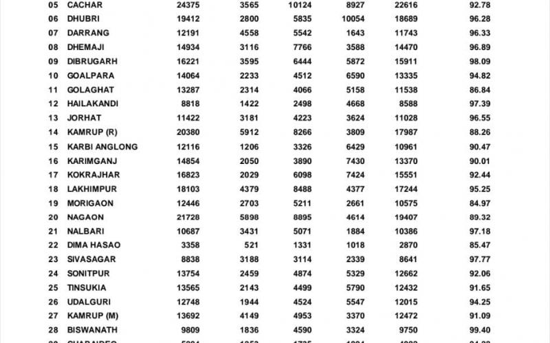 আনহাতে, দ্বিতীয় স্থানত আছে বাক্সা জিলা।উত্তীৰ্ণ ৰ হাৰ ৯৮.৯১ শতাংশ।